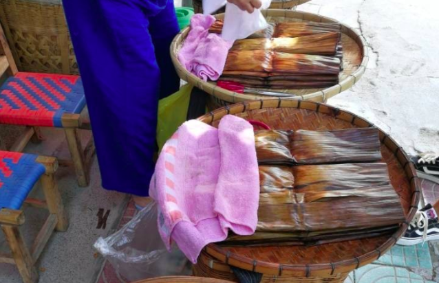 褡裢粑是布依族人民喜爱的传统食品,因其如褡裢袋而得名。每逢农历七月十五日(中元节),布衣族人民均普遍制作褡裢粑,作为祭祀祖先的供品。相传两千多年前,祭祖是用当地盛产的芭蕉果和普通糍粑,后来发展为用芭蕉和糯米蒸熟,加上红糖,制成甜味糍粑。又经过多次改进才形成现在的褡裢粑。如今,除七月十五日以外,逢年过节,宴客,走亲访友,也要制作褡裢粑。蒸熟后的褡裢粑呈长方形,色泽酱黄,香甜细腻,具有芭蕉果和芭蕉叶的特殊香味。热吃软滑细腻,冷吃清凉甜润,烙食香脆。
