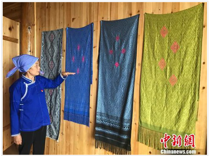 粟田梅说,在过去,当地人织出的一匹匹侗锦多用于日常穿戴,且品种比较单一,并未进入市场流通。加之农村青壮年不断外出务工,侗锦曾一度面临无人传承的窘境。