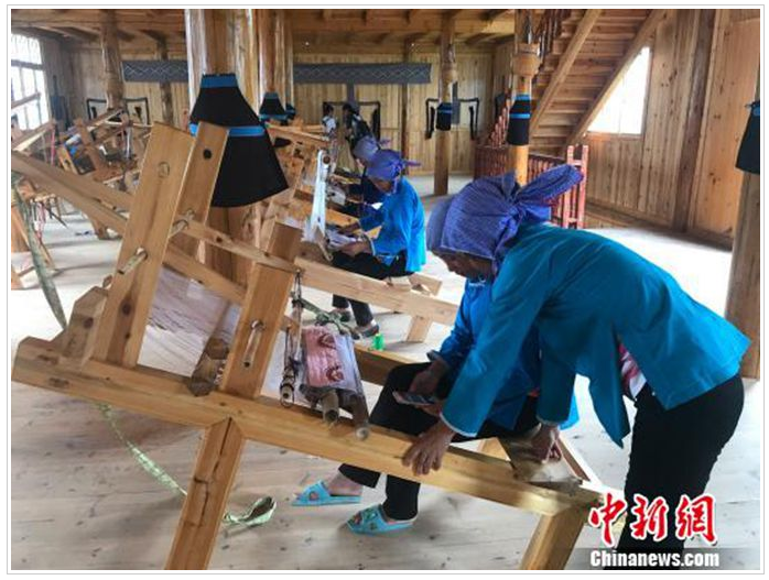 听闻姐姐在这里织锦每月可拿到3000多元的收入,今年7月,此前在广东务工的文坡村二组村民龙练霞干起了这份家门口的工作,再也不想外出了。“既方便照顾家人,又可以抽空干点农事。”今年30多岁的龙练霞说。和她一样,看到侗锦的销路慢慢打开了,村里许多在外务工的年轻人也纷纷返乡,拾起祖辈们的老手艺。