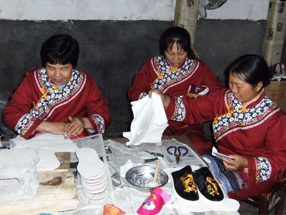 恩施土家族苗族自治州咸丰县高乐山镇官坝村土家人做绣花鞋  老铁供图