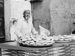 维吾尔老人很会打馕,这又是小城的另一项营生。原先住在农村,大家都是用自己的馕坑来打馕,打一次够一个星期食用。进了城,馕坑没了,主妇们用烤箱烤了几次,总觉得少了那么一点味道。于是,小城里出现了几个打馕人,在馕坑里打好馕,每日售卖。