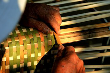 傣族竹编工艺是傣族的传统工艺美术形式,历史悠久,造型古朴,美观实用。由于我国傣族主要聚居在云南等地的热带、亚热带地区,居住地周围多与竹子为伴,在生产生活中就地取材,形成了傣族世代相传的主编技艺,具有着鲜明的民族特色。傣族竹编选材主要采用藤竹、粘竹、大黄竹以及巨龙竹等编织,将竹丝、篾片挑压交织,被挑压的篾为“经”,编织的篾为“纬”,由经与纬的挑压可以编织出千变万化的图案,从而制作出千姿百态的竹编产品。代价的村村寨寨都掩映在竹林翠色之中,住的是竹楼,用的是各式自编的竹器,大至床、桌、柜、席,小至帽、盒、篮、篓,无一不为竹编。精美的竹编不仅是傣族人民的日常用品和生产工具,更是傣族人民生活艺术的外在表现,它已与傣族人民融为一体,已经成为傣族最重要的民族文化载体和文化传播的媒介。