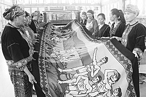 工作人员展示《锦绣黎家》黎锦长卷。 资料图片