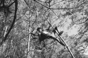 此外,如碗口粗的松树是最好摇荡的,太粗的树枝弹性不好,太细的树枝又承受不了人体之重。至于距离,树与树之间伸手可及是最好攀爬的,但相隔四五米远的树也能扳弯身处的树木荡过去。