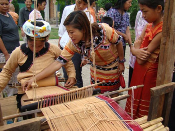 2010年上海世博会活动周期间,一台名为《记忆云南》的18项非物质文化遗产展示成为最吸引眼球的亮点之一。活动现场,18名云南非物质文化遗产传承人和民间艺人展示白族布扎、纳西族东巴画、傣族剪纸、傣族竹编、佤族织锦技艺等制作技艺。其间展示的佤族织锦技艺在民族文化风情浓郁,文化底蕴深厚的耿马县佤族村寨里流传甚广。在耿马的佤族村寨里,妇女们一般都会纺线织布,佤族传统服饰也多用自染自织的土布缝制。此地佤族传统服饰按地域分为两大类。一类是分布在耿马镇、四排山乡的传统服饰,以女性身着佤族红色短衣筒裙、男子身着佤族黑衣宽裤为标志;一类是分布在勐简乡大寨村的“黄衣阿佤”服饰,以女性身着佤族黄衣筒裙、男子身着黄衣宽裤为标志。佤族妇女所用的纺线有棉线、麻线两种。棉主要是草棉,麻主要为苎麻和野生火麻,纺线采用内地传入的有纺锤的纺车。在耿马镇芒国村芒俄村民小组等佤族聚居村寨,笔者先后目睹了佤族织锦的全过程。只见纺织 中的佤族妇女一个个端坐在纺车前,凝神专注地操持着手中的活计。她们左手持麻,右手持纺锤,将纺锤放在大腿上一搓,纺锤转动起来后,把麻纤维慢慢从左手拉出并捻成线,纺好一截线便将它绕到小竹棍上。如此这般不停地左右穿梭,又不断地再搓、再捻,纺出的布匹纹理细密、结实挺拔。耿马四排山乡织锦的佤族妇女,大多采用一套竹木制的很原始的腰机,前后上下共有十七个零件。纺线时,她们将线的一头栓在妇女腰上,另一头用木棍穿好,搁在织布处钉在地上的两根木桩上。织时两头绷紧,将绕在木棍上的纬线穿到经线的中间,然后用抒刀把线打紧。这种织法节奏虽然慢一些,但织出的布更加厚实紧绷,适用于纺织粗布和麻袋。在勐简乡大寨村的穿“黄衣”的佤族妇女,用黄土、玉米粉、茶叶、小饭豆、榄树皮等7种植物做原料浸染的黄色棉线织锦,使用的有竹木制腰机和纺锤纺车两种。织锦时,只见她们一边捻线,一边传递纺锤。不织时,又把纺锤和抒刀拆下,依然卷起放好。来自耿马镇、四排山乡、勐简乡的佤族群众介绍,中华人民共和国成立后,由于商店里卖的布料比佤族自织的布料更价廉物美,佤族人家自己纺织制作服饰的已经不多,但是缝制麻布被和麻袋用的麻布,还是多数来源于自家纺织,尤其是佤族村寨妇女穿的裙子,也必须是自己织,不然会被人同族人耻笑为愚笨和懒惰。2009年以来,每年5月中旬,耿马都要举办佤族“青苗节”庆典活动。活动期间,该县不仅上演丰富多彩的文艺节目和民间体育比赛项目,还现场展示该县独具特色的佤族织锦技术。织锦展示中,来宾增长了对佤族传统手工技艺方面的知识,不少围观群众还饶有兴趣地一边询问织锦者,一边亲自动手体验这项古老而传统的纺织技艺。