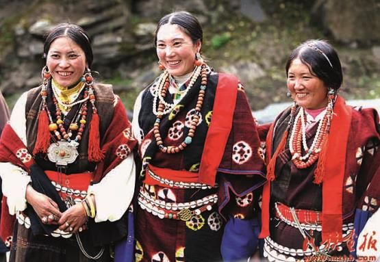 四川省甘孜藏族自治州丹巴县嘉绒藏族妇女的穿着。