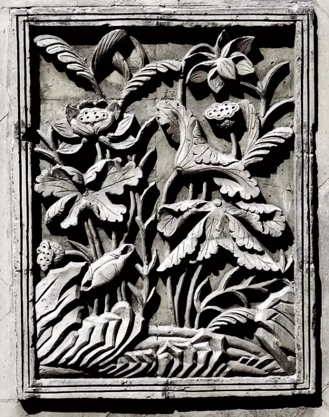 清代,北京紫禁城宫廷内墙面夹柱的通气孔也都使用砖雕,镂雕花鸟图案,牢固砖雕 而美观,且利于空气流通。