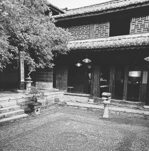 如今大研古城里大都是客栈和商铺,有这样一个幽静古朴的老宅,真是幸事。阿六叔家老宅的六合门保存得很完整,六合门和梁坊上的雕刻也很精致。他还保存了家传的一些旧家具、家谱、老照片等,使老屋从里到外都显得古色古香,庄重而雅致。