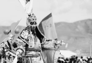 为观众表演《格萨尔》藏戏。 郭求达摄