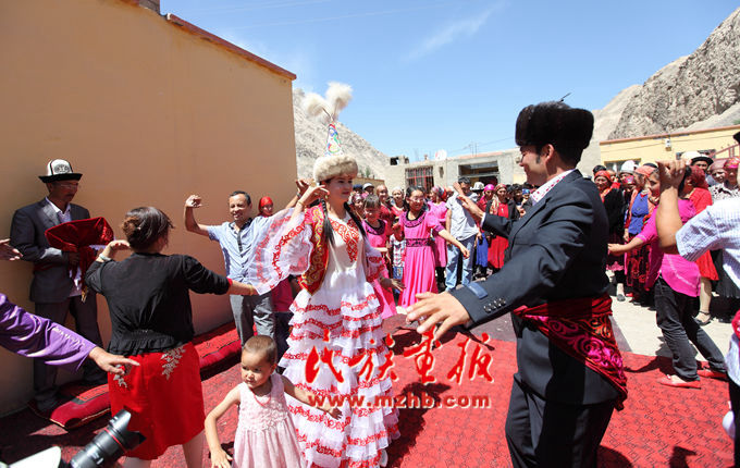 婚礼上新郎新娘同亲朋好友一起跳舞(摘自《民族画报》)