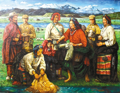 “以前画画时,对自己的最高要求就是画得要逼真,把油画画得像一幅放大了的照片,而现在关注的是如何画出能体现当代的画面。西藏的美是无穷无尽的,我就想用绘画的方式穷尽一生去追求,展现大美西藏。”如今的索曼尼,淡去了初出茅庐时一味追求画面质感的匠气,多了些许内心对西藏这片热土深层次的思考。他笔下的西藏是一片充满生机的土地,浓墨重彩之间,既有对传统和过往年华的回望和怀念,又在仿若不经意间透过一个眼神、一抹色彩、一个小物件尽情诠释活力和希望。