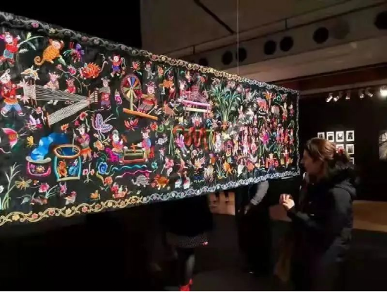 《锦绣台江》长22米、宽0.9米,由台江县100余名绣娘用了一个多月时间共同绣制完成,是目前台江苗族刺绣中最长、最精美的作品