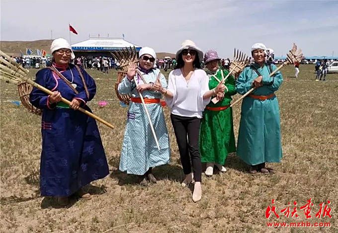 王金梅在锡林郭勒草原的夏季那达慕上体验牧民生活。