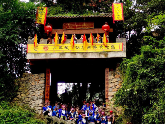 六郎城村内民居鳞次栉比布局有序, 古香古色的房前屋后栽种芭蕉、翠竹和果树,周围绿地如茵,果木遮天,竹丛掩映。使人们感悟的思绪穿越在大宋的烽火岁月、金戈铁马,号角高亢和深沉悠远的古军营氛围,呼吸着千百年来生意盎然树木的芬芳,绿意深处,棵棵茁壮的铁皮石斛如箭簇扎根,千百年作为靠山的天然宝库如今变成了财富宝库,是人们考研、旅游的原生态健康生活目的地。