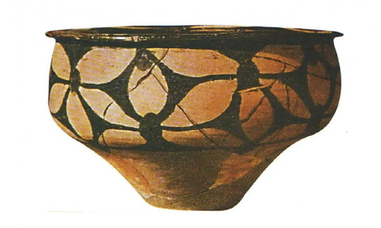 河南三门峡庙底沟遗址出土的仰韶文化中期彩陶花瓣纹盆。(魏兴涛 供图)