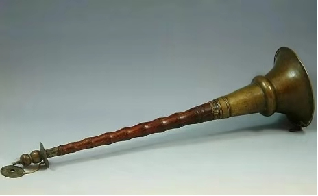 唢呐其实是由一杆空心黄杨木管,管上钻7个洞,管上端安个芦苇哨,下端安个铜喇叭制成的。