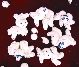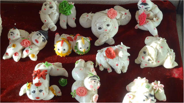 1、春节(过大年)来临前,家庭妇女用白面捏制小狗、小猫、玉兔、鱼娃娃、莲花的面塑制品,上面点缀红枣、花生等。以象征万事如意,多福多寿、家庭和睦。