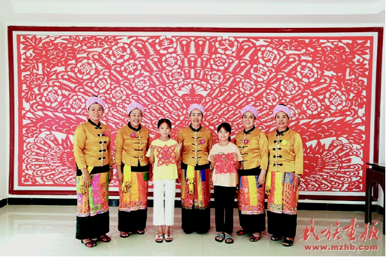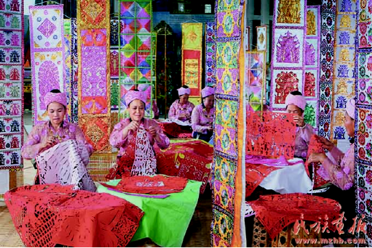 工艺美术专家在邵梅罕傣族剪纸艺术馆考察。