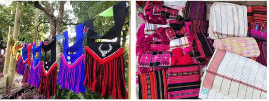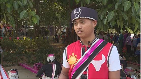 翁嘎科魏明介绍:“佤族男服饰以黑或者与红、黑白、黑红为搭配,女服饰裙子是纯手工艺以黑白、黑红为主基调, 头饰是用银白色的头饰进行装饰,裹着一层类似于项链一样的饰品,最原始的头饰还是用黑布裹起来的,演变到现在的话还需要做一些装饰。”