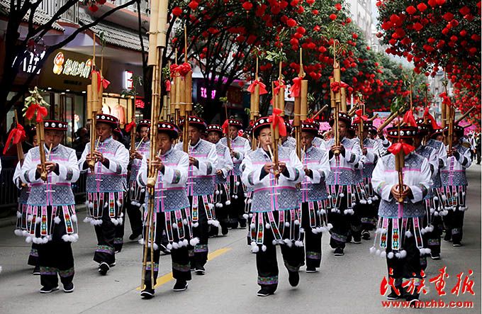 侗族同胞芦笙吹奏展示。
