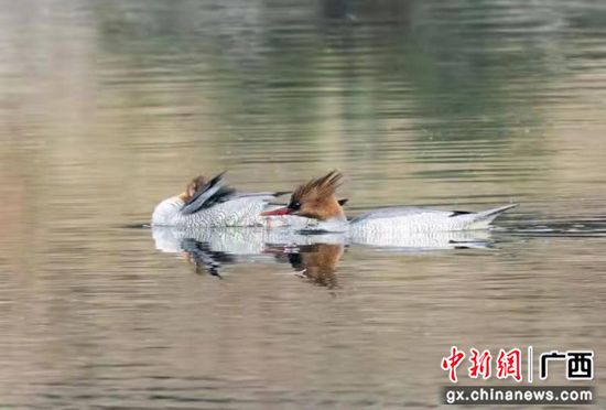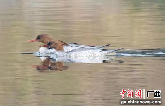 广西荔浦市荔江流域首次发现国家一级保护动物:中华秋沙鸭。张德林 摄