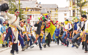 2014年2月8日,四川省雅安市宝兴县硗碛藏族乡的藏族同胞举行灯会、舞狮、舞龙等活动,庆祝“上九节”...