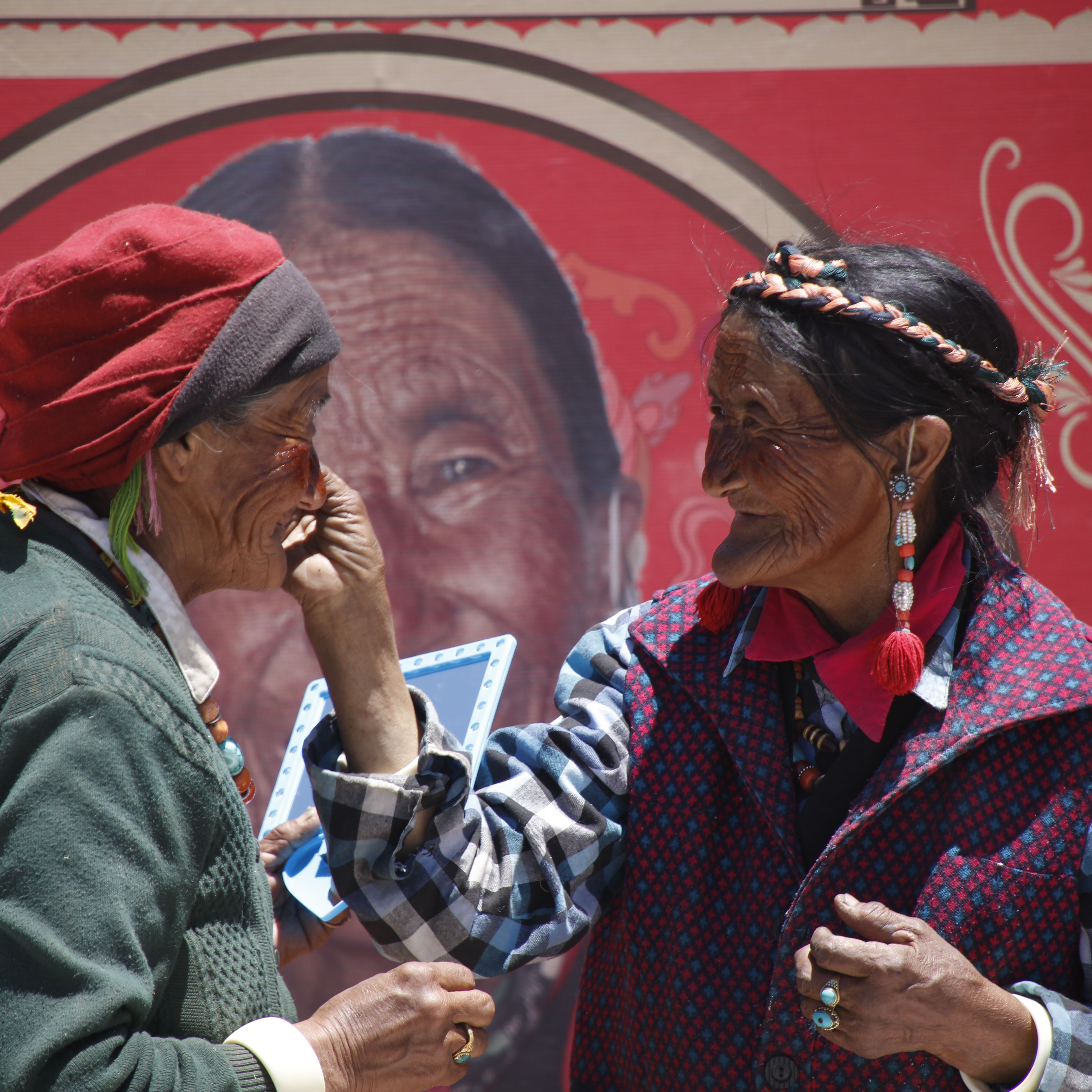图片说明:用札达面膜防晒的老奶奶们